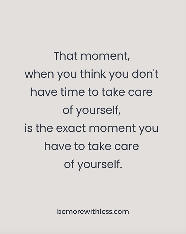 Simplifying is self care too. My entire simplicity journey started after I was diagnosed with multiple sclerosis in 2006. Now I share what I’ve learned and what inspires me here on the blog, on Instagram and Facebook. Even though I’m still learning, throughout my simplicity journey, words of wisdom have made a big difference. They gave me conviction to keep going, reminding me that I wasn’t alone. Notes and self-care quotes helped me too. It was good to remind myself that I was allowed to put myself first.