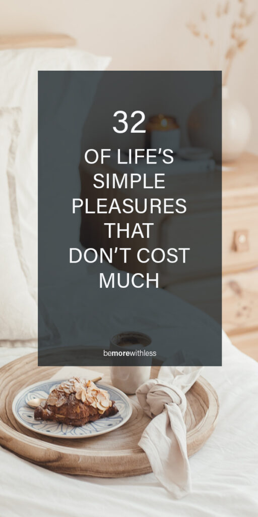 I never imagined that minimalism would ignite deep joy and gratitude in my life. And I also didn’t think the lifestyle would help me rediscover simple pleasures. I don’t have to shop for joy or happiness at the mall anymore. Simple pleasures are easy to access, and they don’t cost much money.