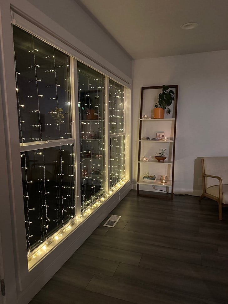 I love this cozy tradition that keeps our home light and bright. It’s a daily simple pleasure to enjoy them. Curtain lights, candles, coffee and good books make for a beautiful way to start the day.